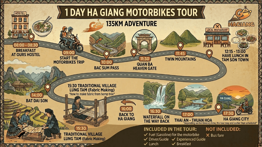 Welcome to our website, HagiangGo where we invite you to embark on an exciting adventure through the beautiful countryside of Vietnam on motorbike. Our motorbike tours offer a unique and authentic way to explore the stunning landscapes and hidden gems of this fascinating country. Whether you are an experienced rider or a beginner, our expert guides will ensure you have a safe and unforgettable experience. So join us on a thrilling ride and discover Ha Giang, the northernmost point of Vietnam, on two wheels!